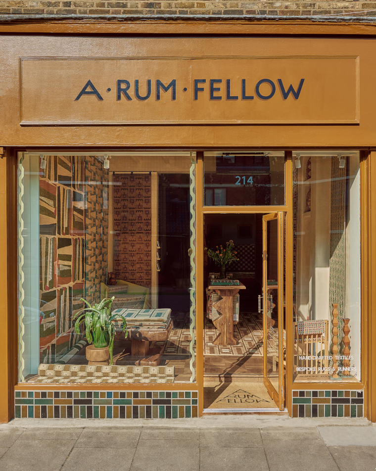 British design studio A Rum Fellow, known for its richly patterned, handcrafted rugs and textiles, has found a new home in the heart of Notting Hill. Founded by Caroline Lindsell and Dylan O’Shea, the studio brings a soulful, story-led approach to contemporary heritage design and the new space on Kensington Park Road is a calm, tactile setting layered with materials and colour.